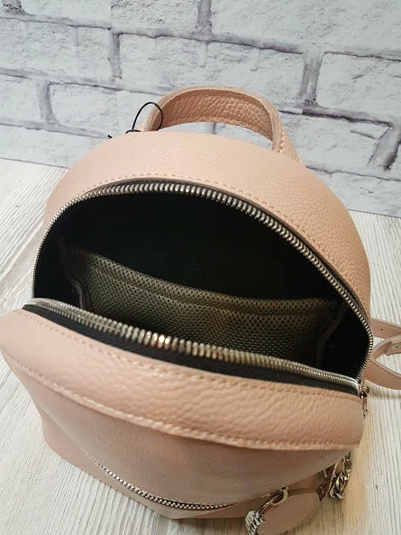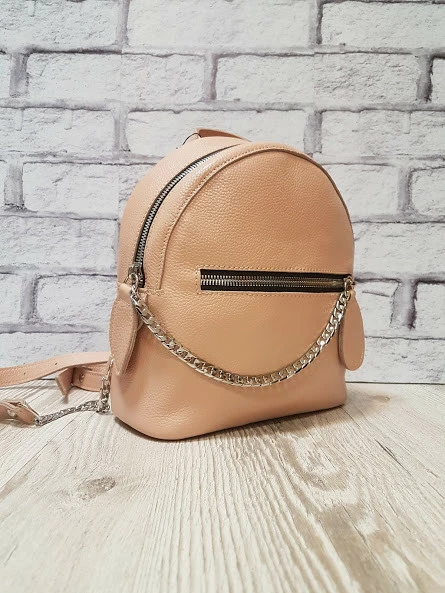 Невероятно удобный рюкзак из качественной натуральной кожи. Отлично держит форму и очень вместительный.Цепочка придает рюкзачку оригинальность.Имеет одно большое отделение, внутри на подкладке.