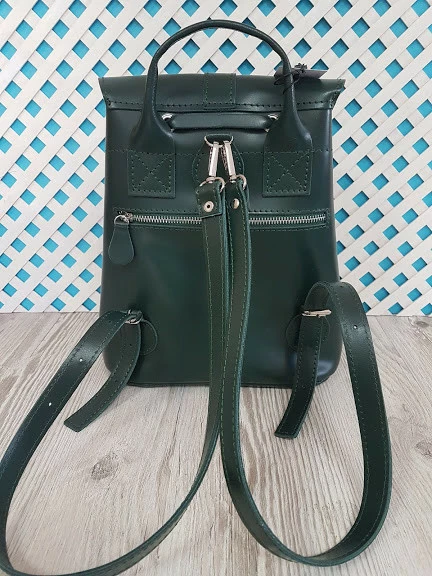 Рюкзак женский "ВОЯЖ" натуральная кожа, темно-зеленый