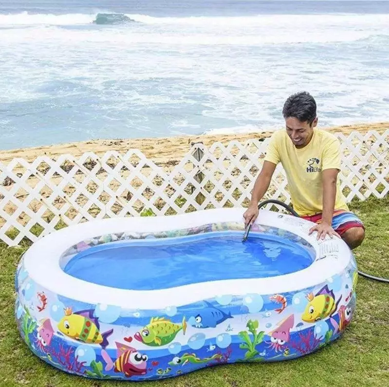 Надувний басейн - це дуже зручне рішення , яке дозволяє дітям весело провести час у власному саду. Все, що вам потрібно зробити, це надути його і розкласти на рівній поверхні і залити водою. Підготовлений таким чином басейн готовий до купання.