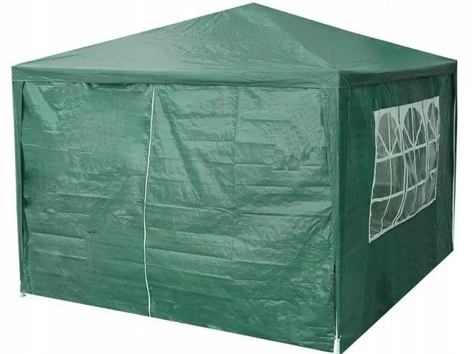 Садовый павильон - ручная палатка защищает от чрезмерного солнца и умеренного дождя. Чрезвычайно простой и быстрый в установке. Павильон идеально подходит для вечеринок в саду. Также отлично подходит в качестве коммерческой палатки. Комплекс занимает мало места. Очень короткое время сборки. Металлические трубки окрашены порошковой краской в ​​белый цвет (устойчивы к ржавчине и коррозии). Все необходимые для сборки элементы включены (фитинги, трубы, канаты, сельдь и т. Д.).