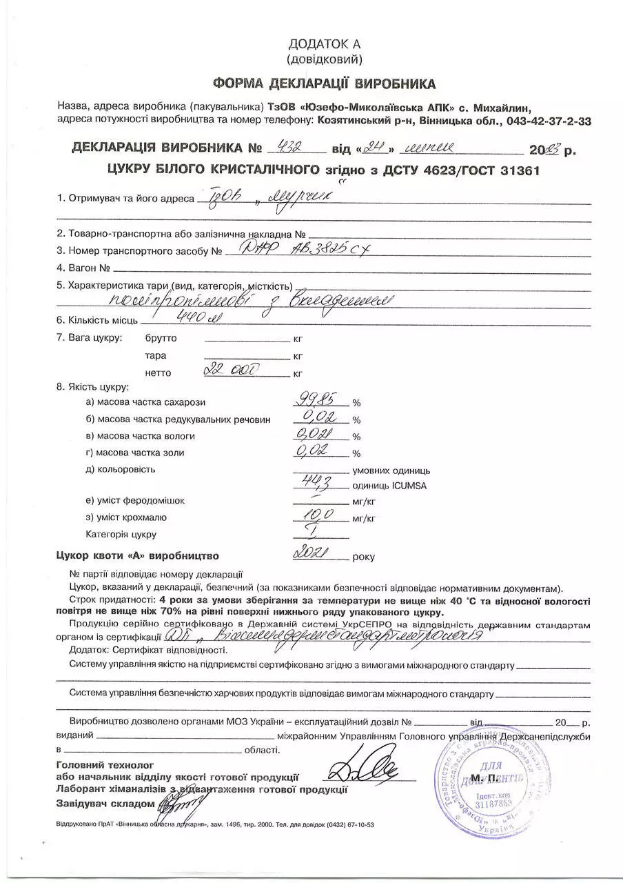 Сахар белый кристаллический третьей категории из сахарной свеклы,