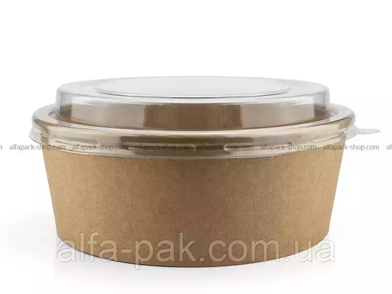 Салатник круглый крафт 1250 мл с пластиковой крышкой - відмінний