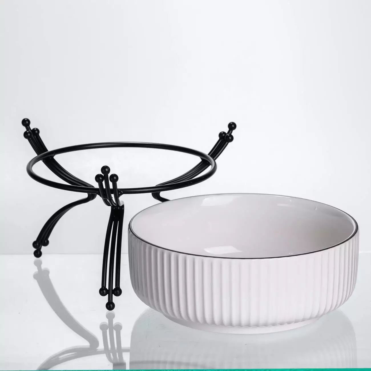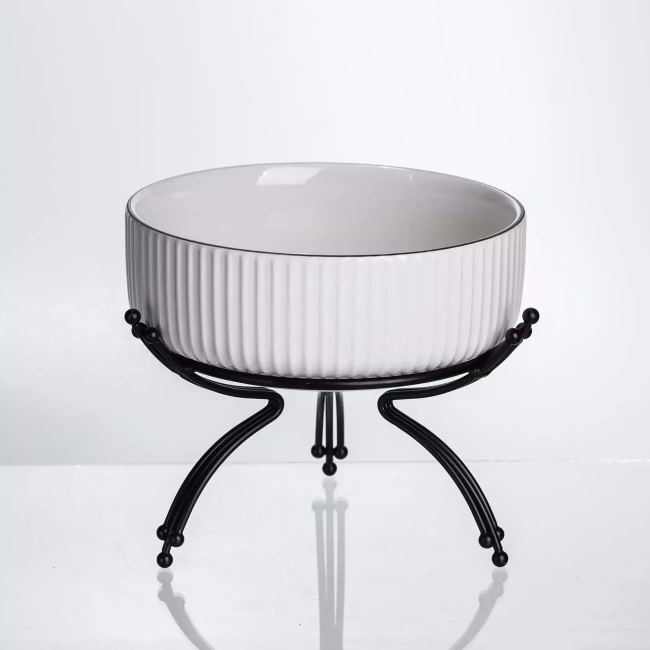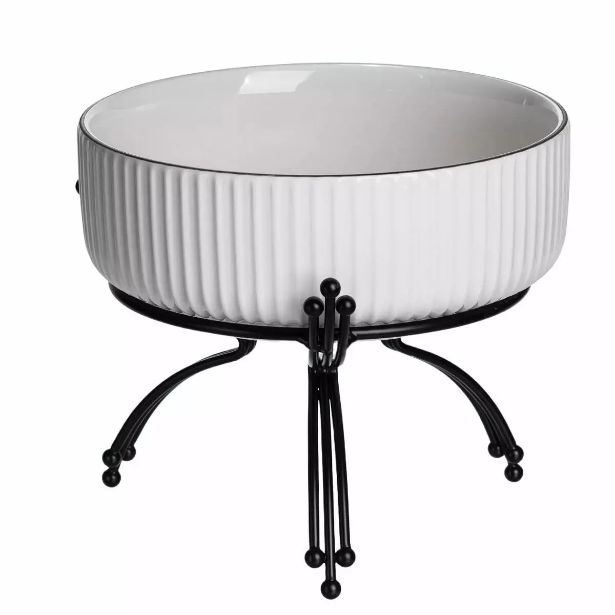 Порцелянова салатниця на металевій підставці — практичне рішення для подачі салатів, гарнірів або фруктів. Вона поєднує міцність металу з елегантністю порцеляни, створюючи охайний вигляд сервірування. Завдяки збалансованим пропорціям салатниця зручно розміщується на столі, підходить для щоденного використання та святкових подій.