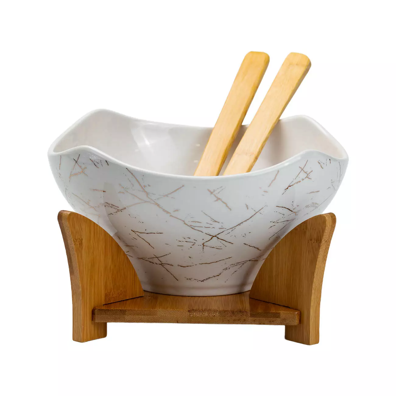 Салатниця порцелянова з ложкою та вилкою на підставці 22*22*14 см