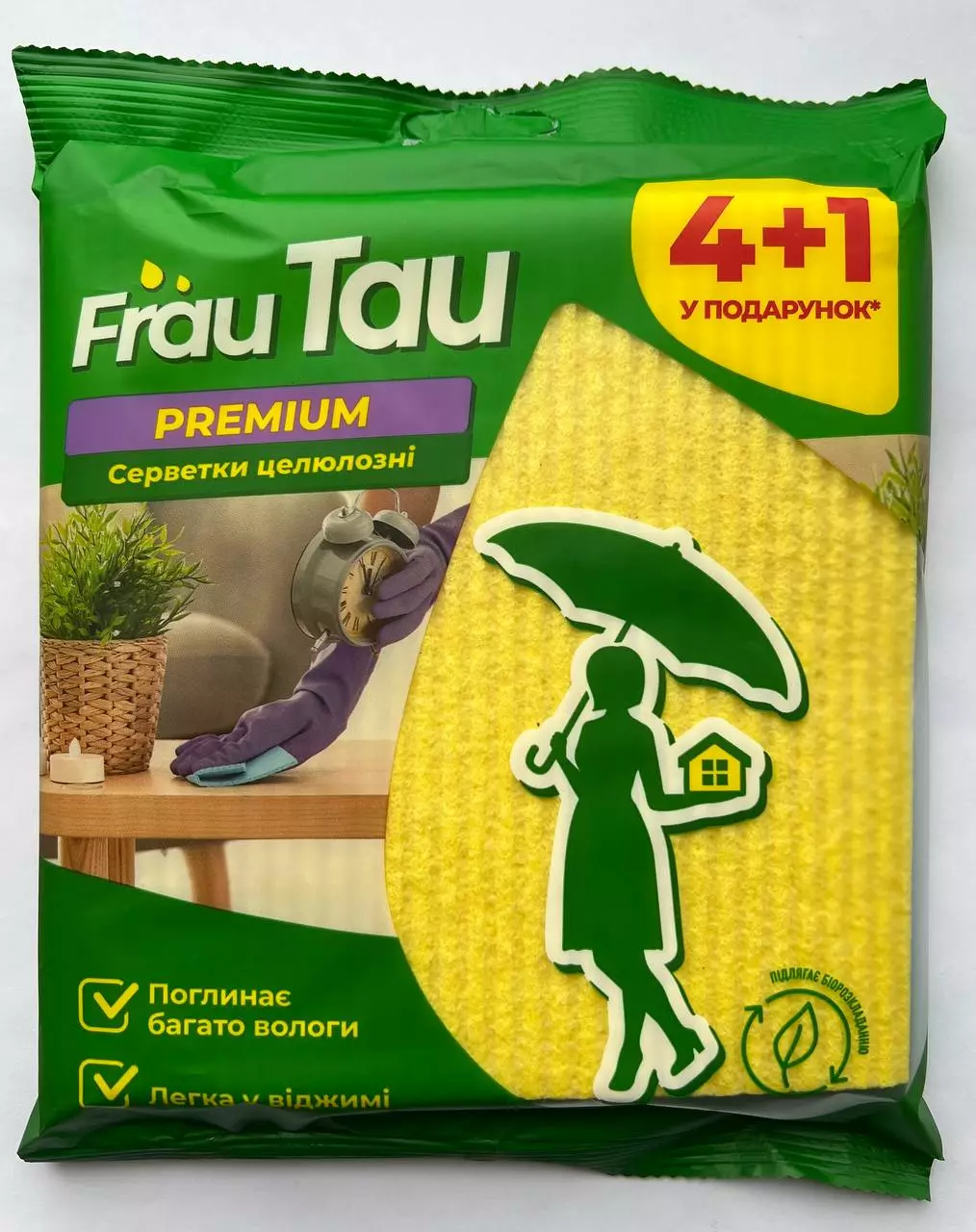 Салфетки для уборки Frau Tau целлюлозные Премиум 4+1 шт (4820263230640)