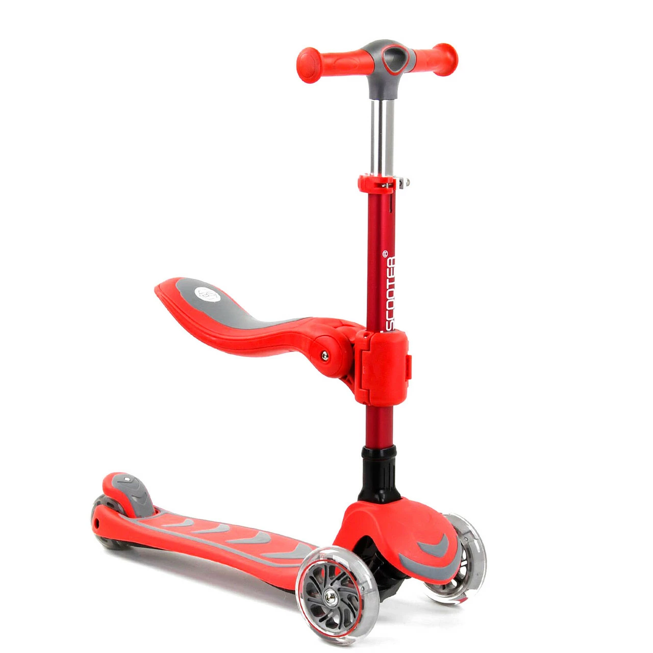 Самокат Scooter с сидением, алюминиевым рулем, и со светящимися