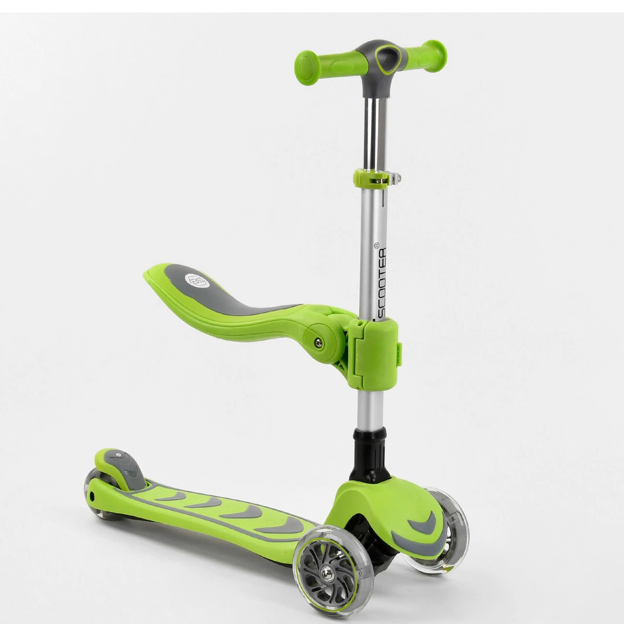 Самокат Scooter с сидением, алюминиевым рулем, и со светящимися