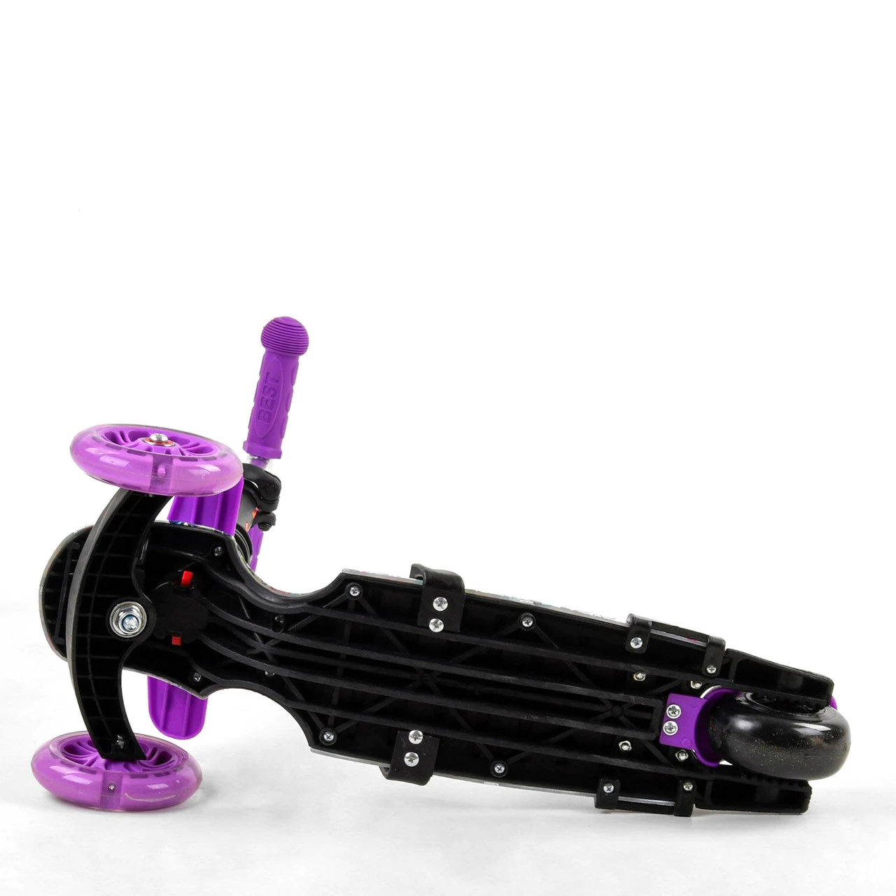 Заднее колесо PVC: диаметр - 9 см, ширина 4 см. Вес самоката 4,2 кг