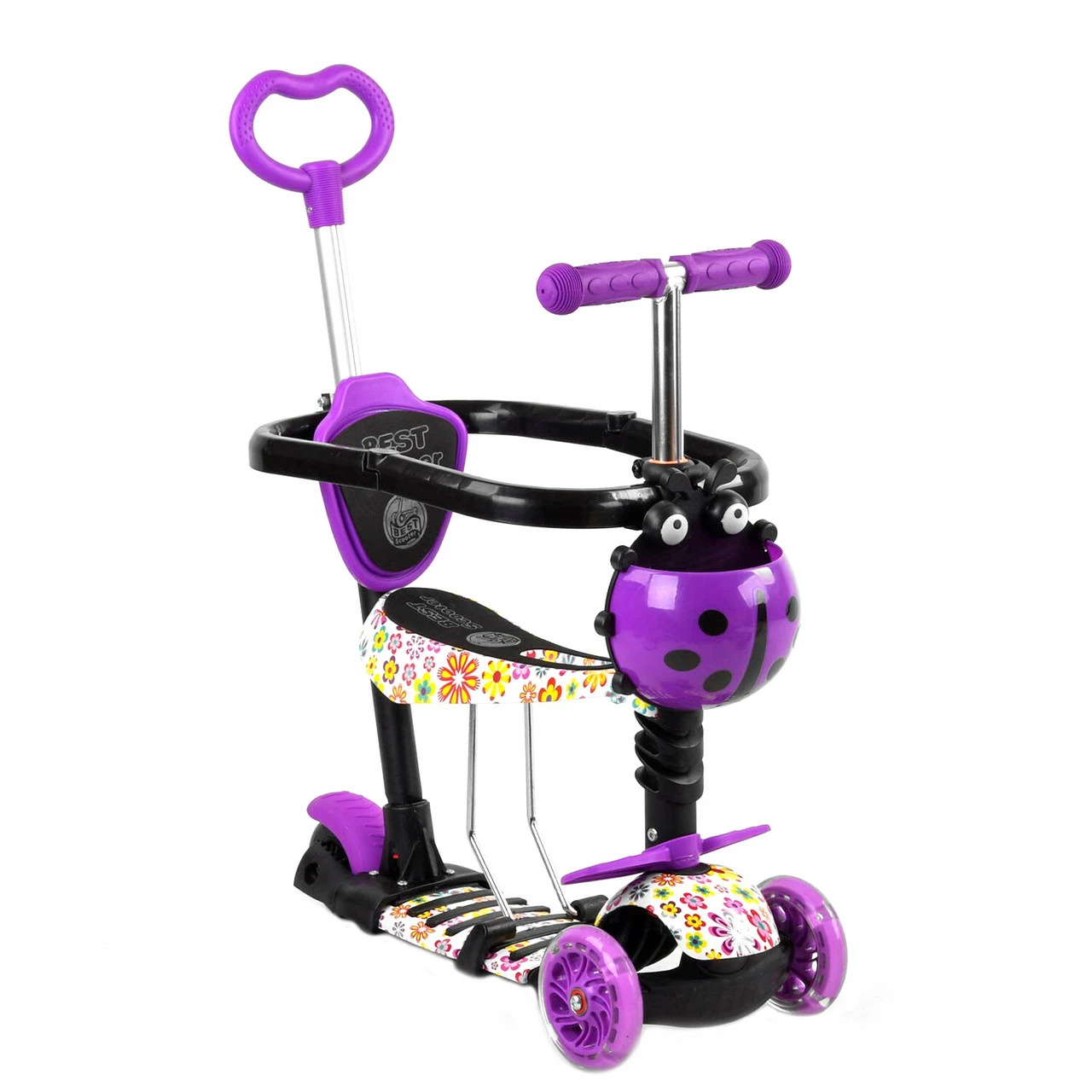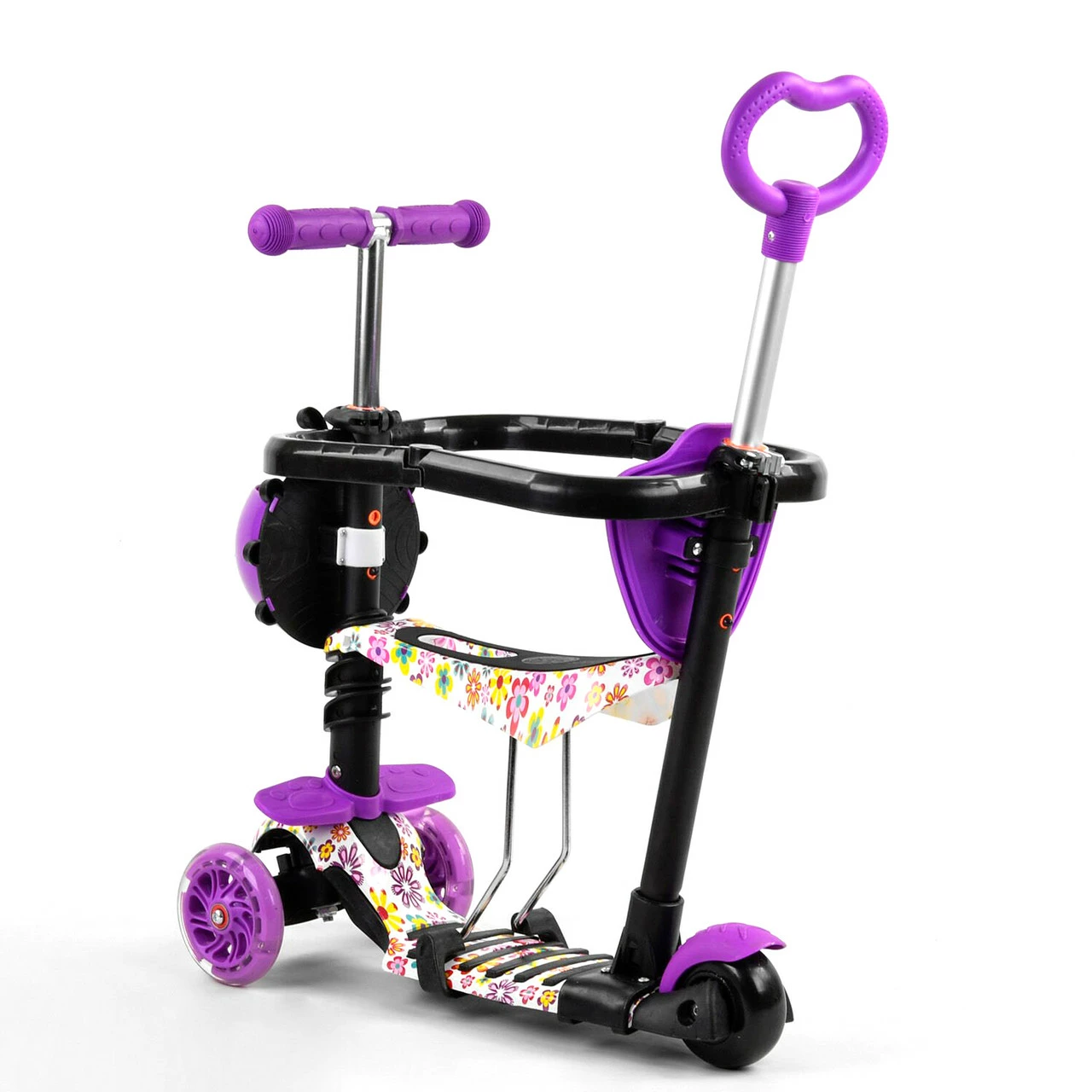 Детский самокат Scooter 5 в 1 предназначен специально для малышей! Благодаря наличию удобного сидения, подножек и ручки родительского контроля, даже самые маленькие детки будут чувствовать себя комфортно во время прогулки. Особенности: