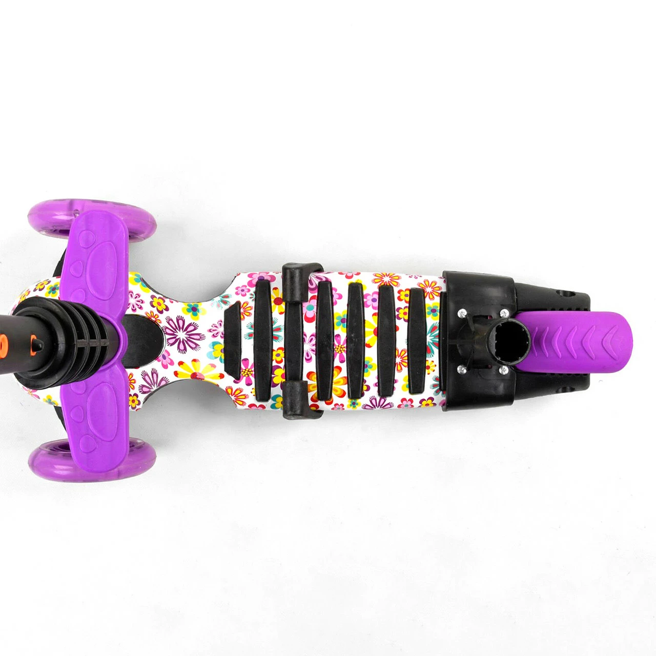 2 вида колес. Два передних светятся и изготовлены из полиуретана (PU), а заднее - из поливинилхлорида (пластика PVC); Размеры самоката: