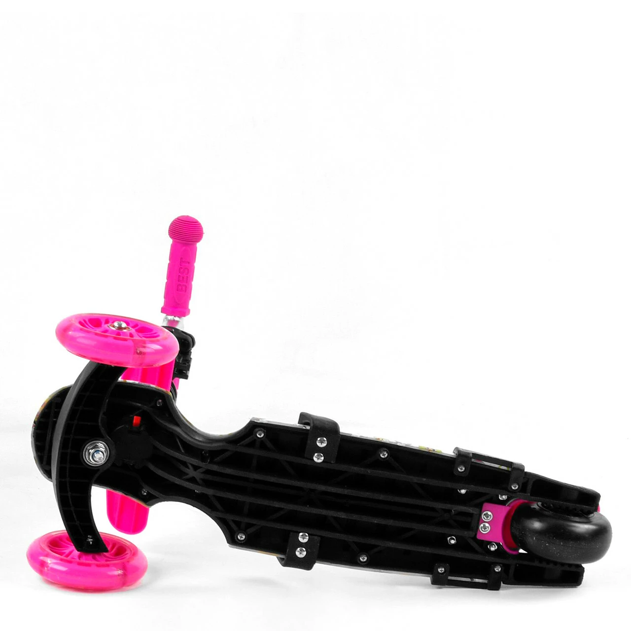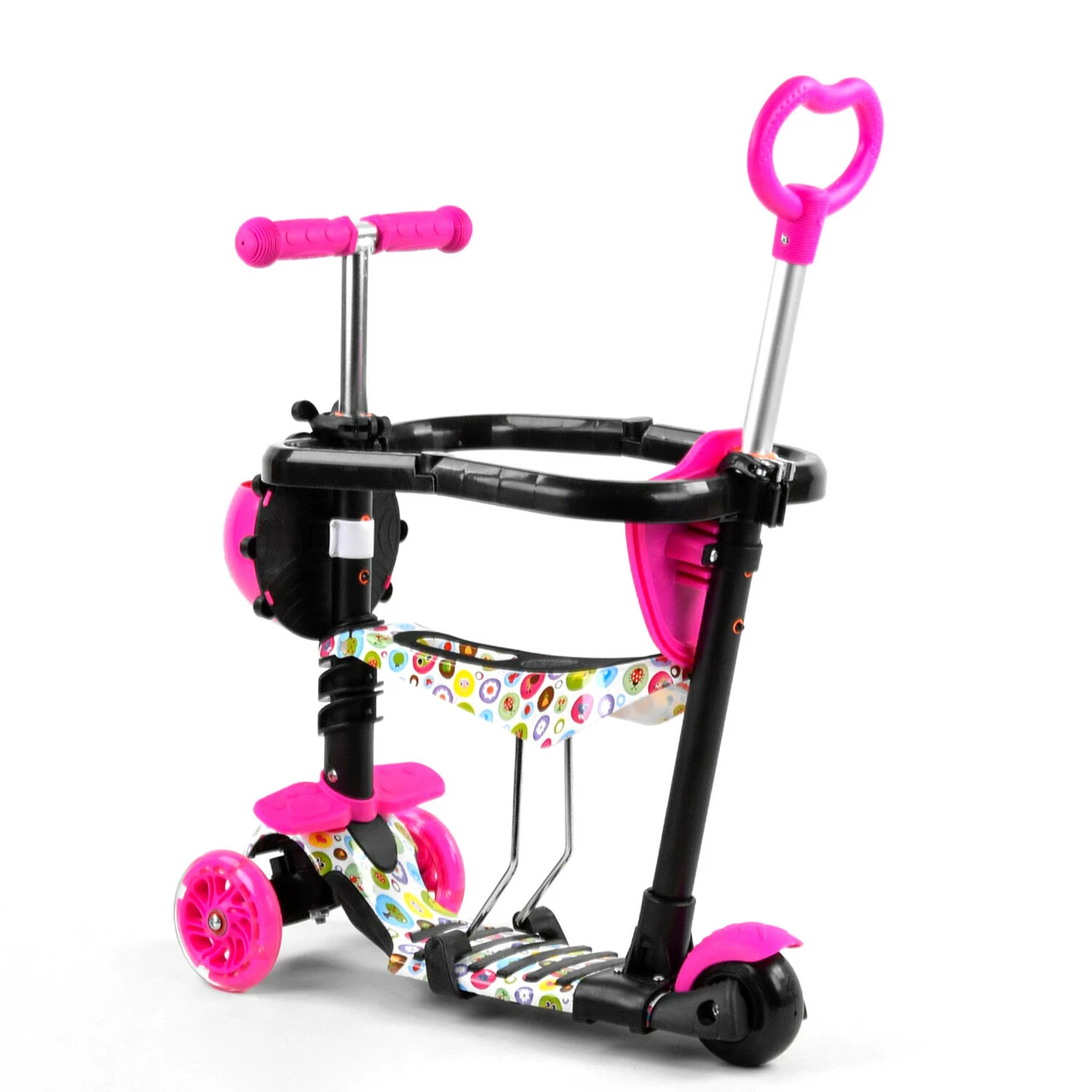 Самокат 5 в 1 с защитным бампером Scooter со световым эффектом Бело-розовый 6900066350672
