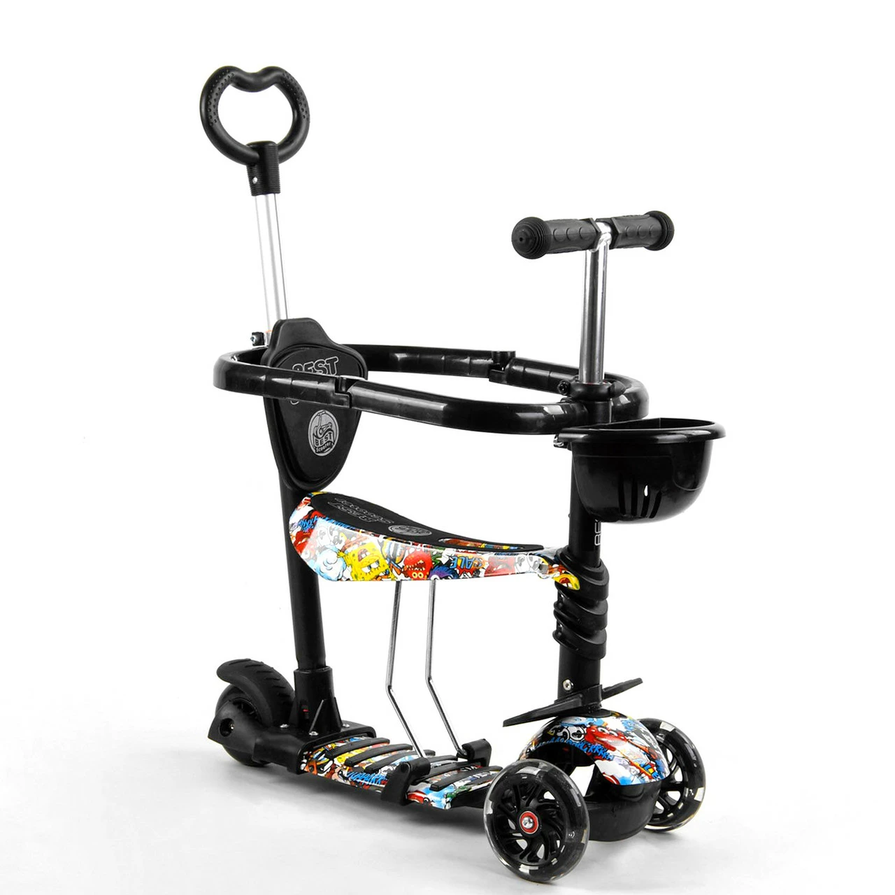 Детский самокат Scooter 5 в 1 предназначен специально для малышей! Благодаря наличию удобного сидения, подножек и ручки родительского контроля, даже самые маленькие детки будут чувствовать себя комфортно во время прогулки. Особенности: