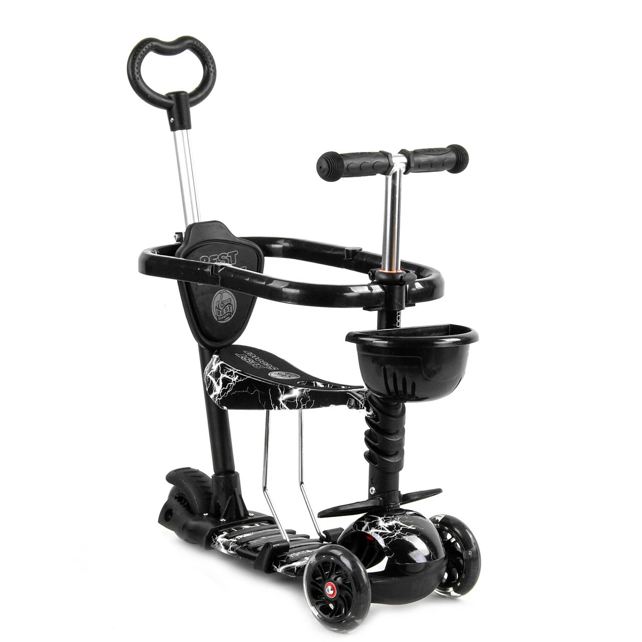 Детский самокат Scooter 5 в 1 предназначен специально для малышей! Благодаря наличию удобного сидения, подножек и ручки родительского контроля, даже самые маленькие детки будут чувствовать себя комфортно во время прогулки. Особенности:
