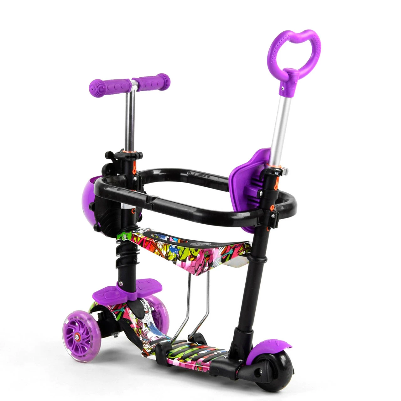 Детский самокат Scooter 5 в 1 предназначен специально для малышей! Благодаря наличию удобного сидения, подножек и ручки родительского контроля, даже самые маленькие детки будут чувствовать себя комфортно во время прогулки. Особенности: