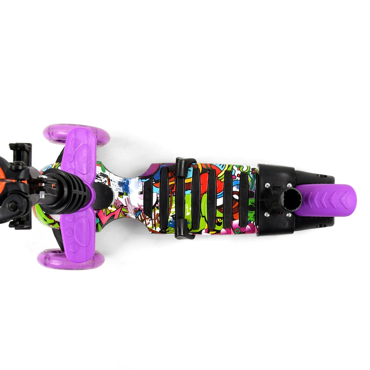 2 вида колес. Два передних светятся и изготовлены из полиуретана (PU), а заднее - из поливинилхлорида (пластика PVC); Размеры самоката: