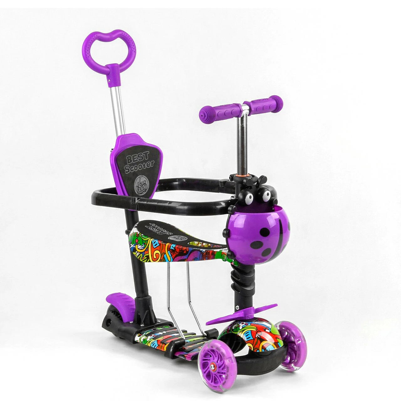 Самокат 5 в 1 с защитным бампером Scooter со световым эффектом Фиолетовый 6900066350474