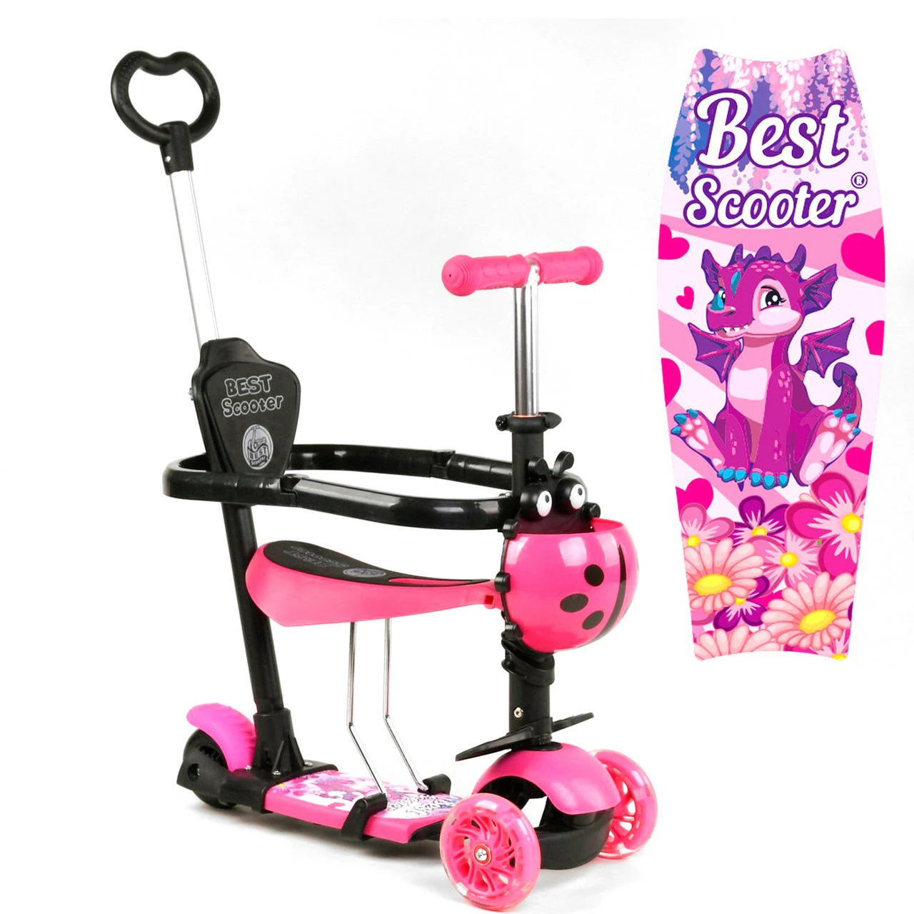 Детский самокат Scooter 5 в 1 предназначен специально для малышей! Благодаря наличию удобного сидения, подножек и ручки родительского контроля, даже самые маленькие детки будут чувствовать себя комфортно во время прогулки. Особенности: