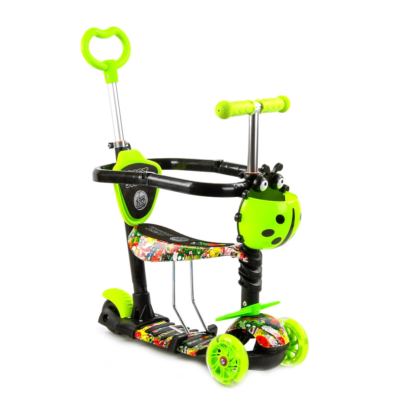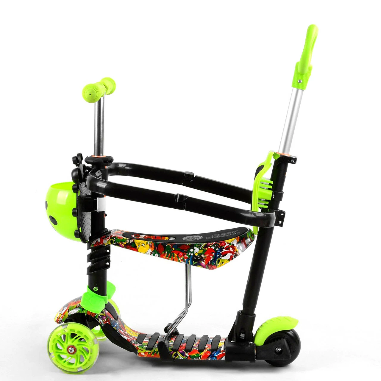 Детский самокат Scooter 5 в 1 предназначен специально для малышей! Благодаря наличию удобного сидения, подножек и ручки родительского контроля, даже самые маленькие детки будут чувствовать себя комфортно во время прогулки. Особенности: