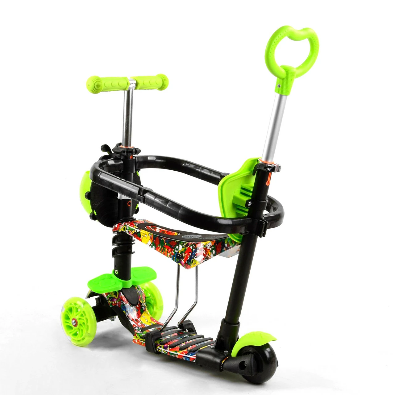 Самокат 5 в 1 с защитным бампером Scooter со световым эффектом Салатовый 6900066350535