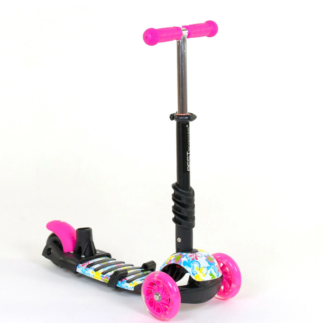 Самокат 5 в 1 Scooter со световым эффектом Бело-розовый 6900066317248