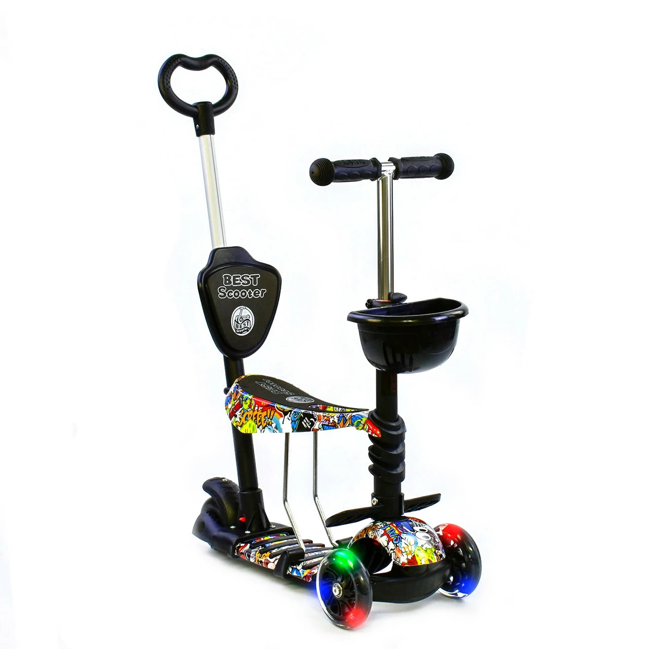 Детский самокат Scooter 5 в 1 предназначен специально для малышей! Благодаря наличию удобного сидения, подножек и ручки родительского контроля, даже самые маленькие детки будут чувствовать себя комфортно во время прогулки. Особенности: