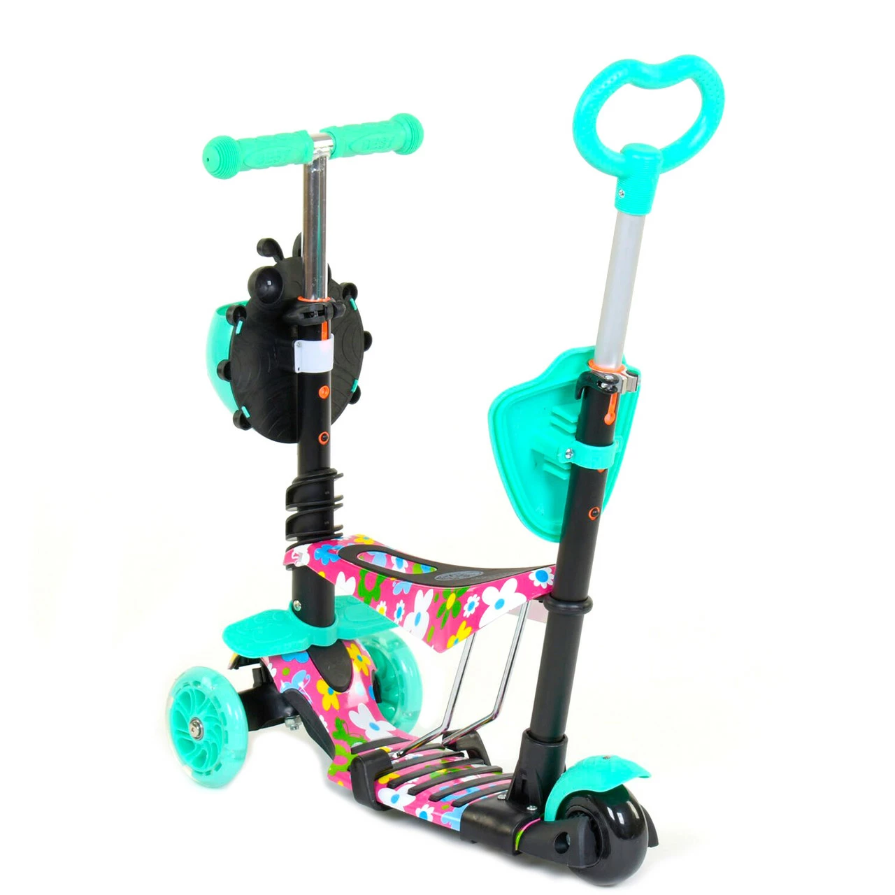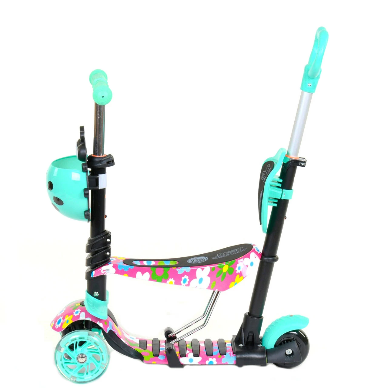Самокат 5 в 1 Scooter со световым эффектом Розово-бирюзовый 6900066317187