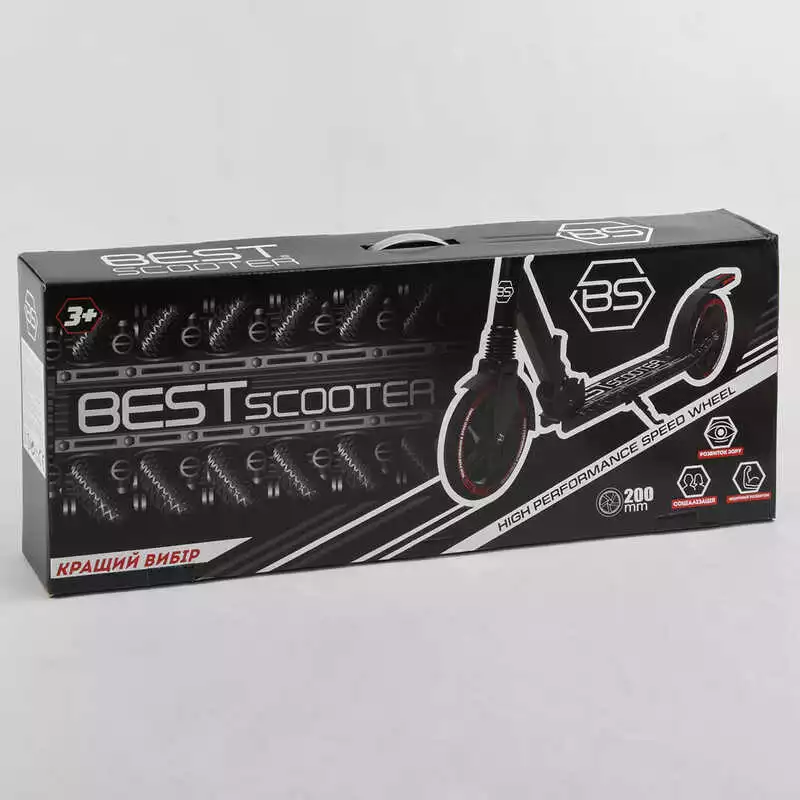 Самокат алюминиевый "Best Scooter" 94123 (2) тормоз со светом, колеса PU, диаметр колес - 200мм, 1 амортизатор передний, зажим руля, в коробке