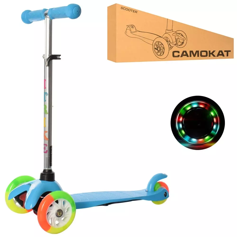 Самокат оснащен 3-мя колесами, которые обеспечивают устойчивость и