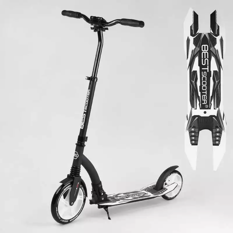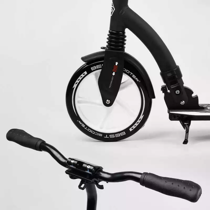 Самокат двухколесный Best Scooter 75343 (4) колеса PU - переднее 23 см, заднее - 20 см, 1 амортизатор, широкий руль, зажим руля, в коробке