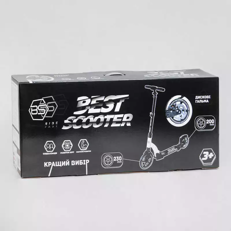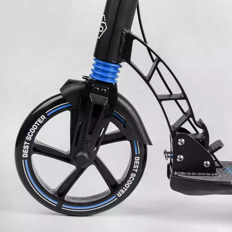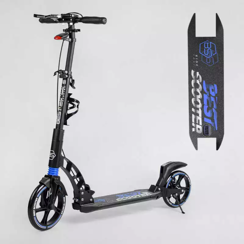 Самокат двухколесный "Best Scooter" 90166-B (2) ФАРА, переднее колесо PU 230 мм, заднее колесо 200мм, 2 амортизатора, дисковый тормоз, зажим руля