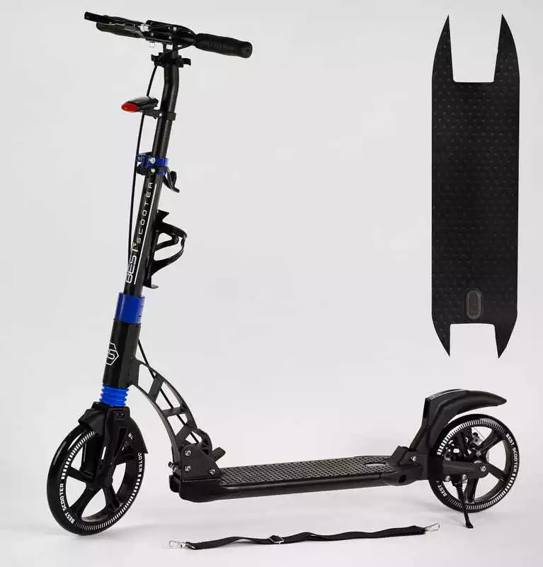 Самокат двухколесный "Best Scooter" D-19055 (2) резиновый коврик, ФАРА, переднее колесо PU 230мм, заднее колесо 200мм, 2 амортизатора, дисковый тормоз