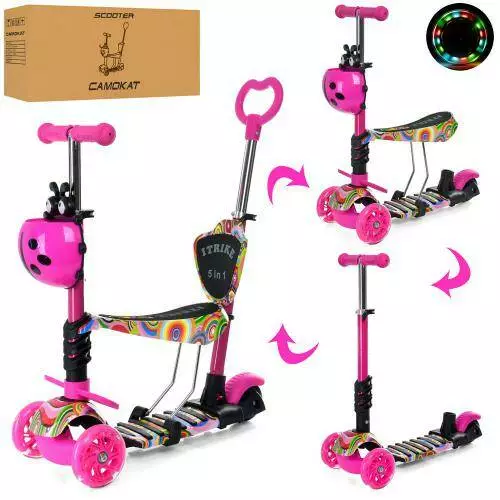 Фотография 1 товарной позиции интернет-магазина детских игрушек www.smarttoys.com.ua Самокат JR 3-058-I-WP18 MAXI, 5в1(біговел), сталь+пласт, 3кол.ПУ, 2пер.120мм-світло, кермо, підніжка