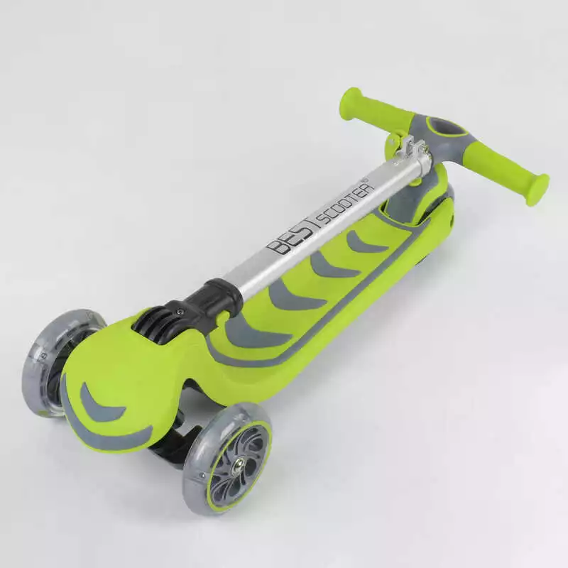 Самокат трехколесный 46987 (4) Best Scooter, САЛАТОВЫЙ, складной алюминиевый руль, 4 колеса PU со светом, d=12 см