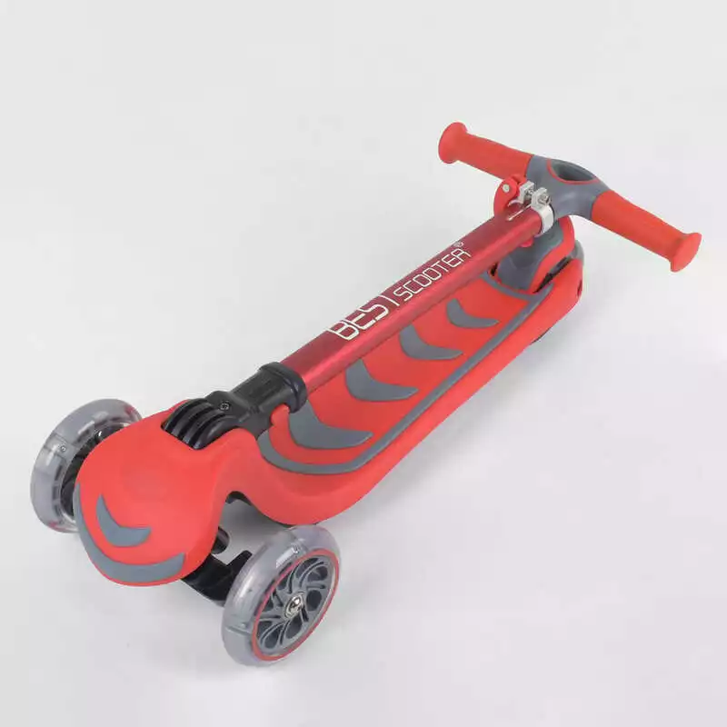Самокат трехколесный 92606 (4) Best Scooter, КРАСНЫЙ, складной алюминиевый руль, 4 колеса PU со светом, d=12 см