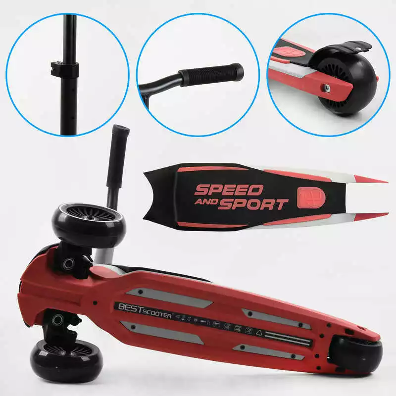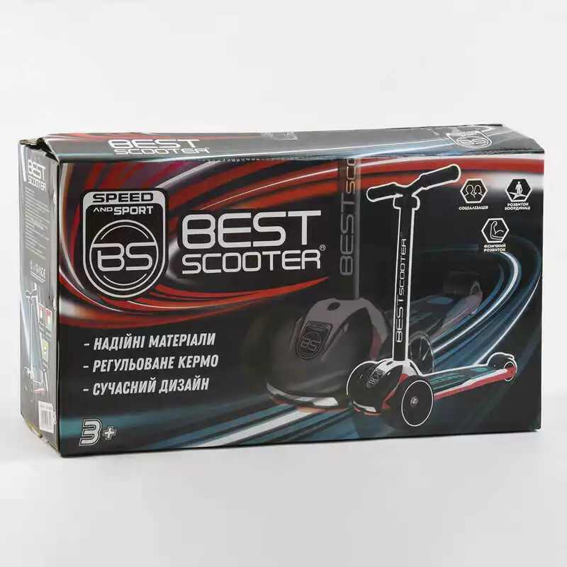 Самокат трехколесный Best Scooter HW-00505 MAXI (6) съемный алюминиевый руль, передние колеса PU 120х45мм. заднее 80х50мм, со светом, в коробке