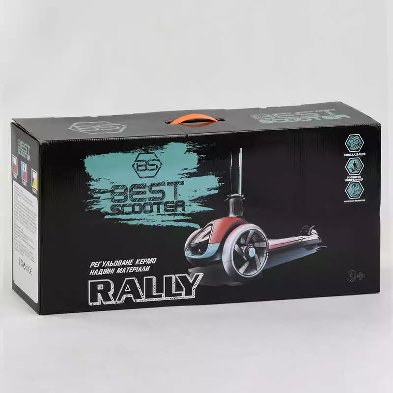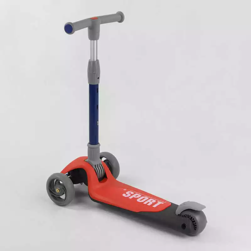 Самокат трехколесный F-44077 (6) Best Scooter, КРАСНЫЙ, складной алюминиевый руль, 3 колеса PU со светом, d=120*35мм