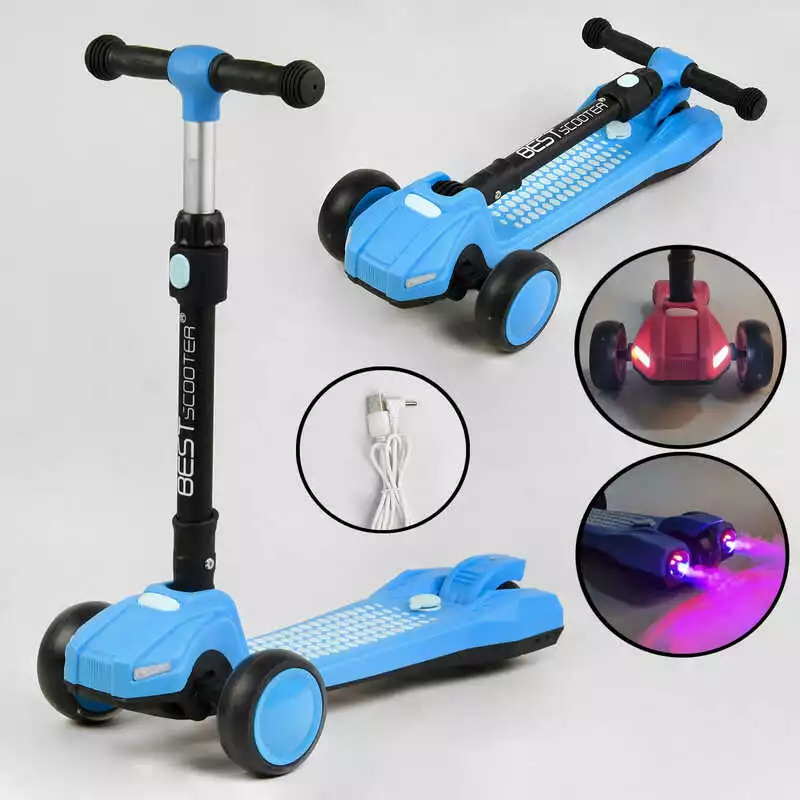 Самокат трехколесный LT-10635 Best Scooter с парогенератором (6) складной руль, ЗВУК МАШИНЫ, ДЫМ, СВЕТ, пластмассовый, колеса PU 120х35мм, в коробке