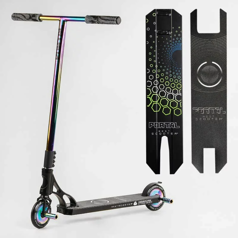 Главная > Каталог > Самокат трюковий PL-51588 Best Scooter (4) ""Portal"" HIC-система, ПЕГИ, алюмінієвий диск та дека, колеса PU, d=120мм, ширина керма 58 см оптом