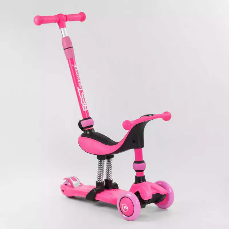 Самокат-велобег 3в1 трехколесный BS-23180 (4) Best Scooter, 3 колеса PU со светом, сидение, амортизаторы, родительская ручка