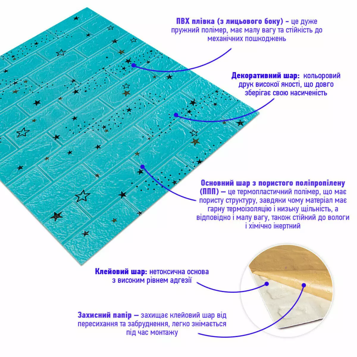 - Клейовий шар: нетоксична основа з високим рівнем адгезії.