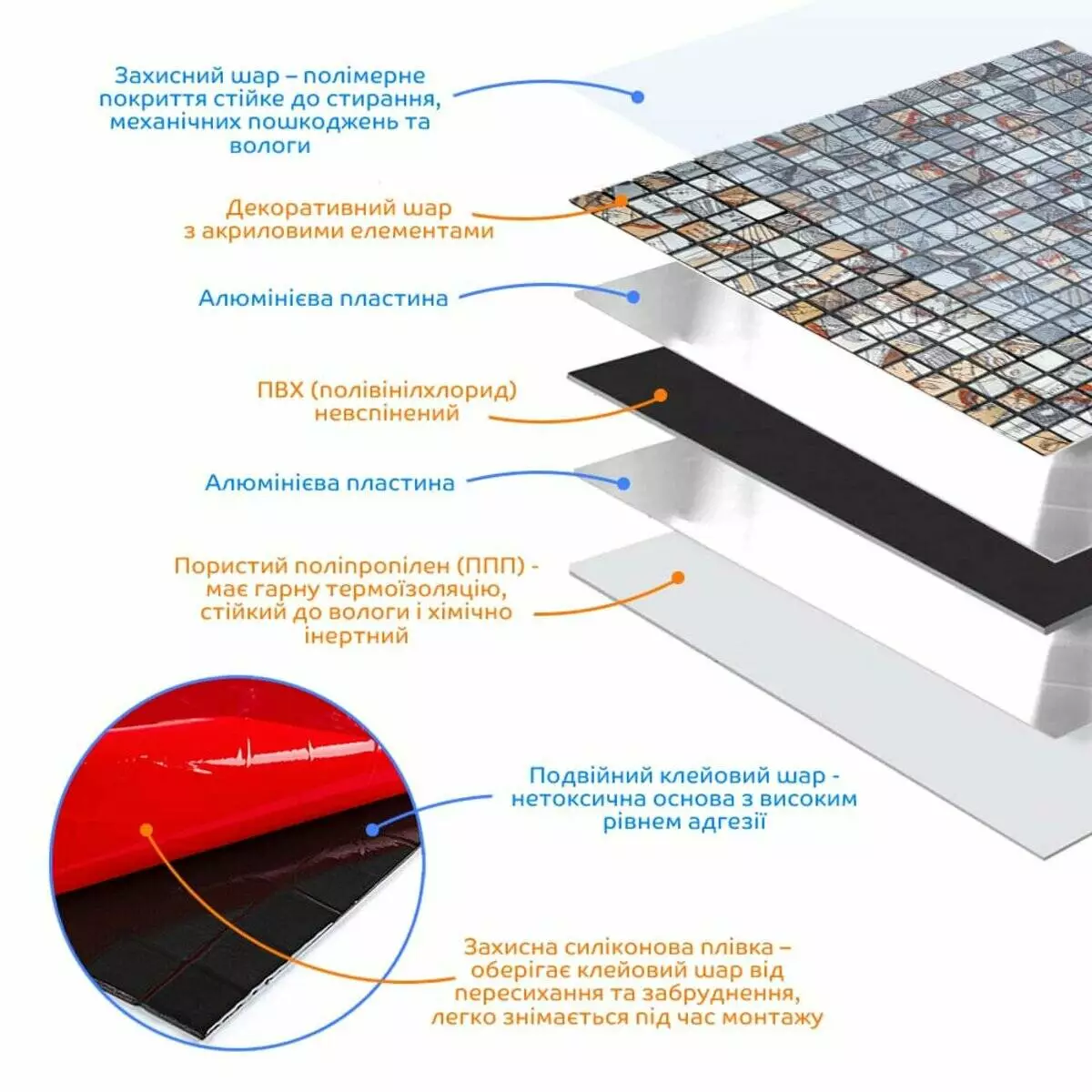 - Захисний шар: полімерне покриття стійке до