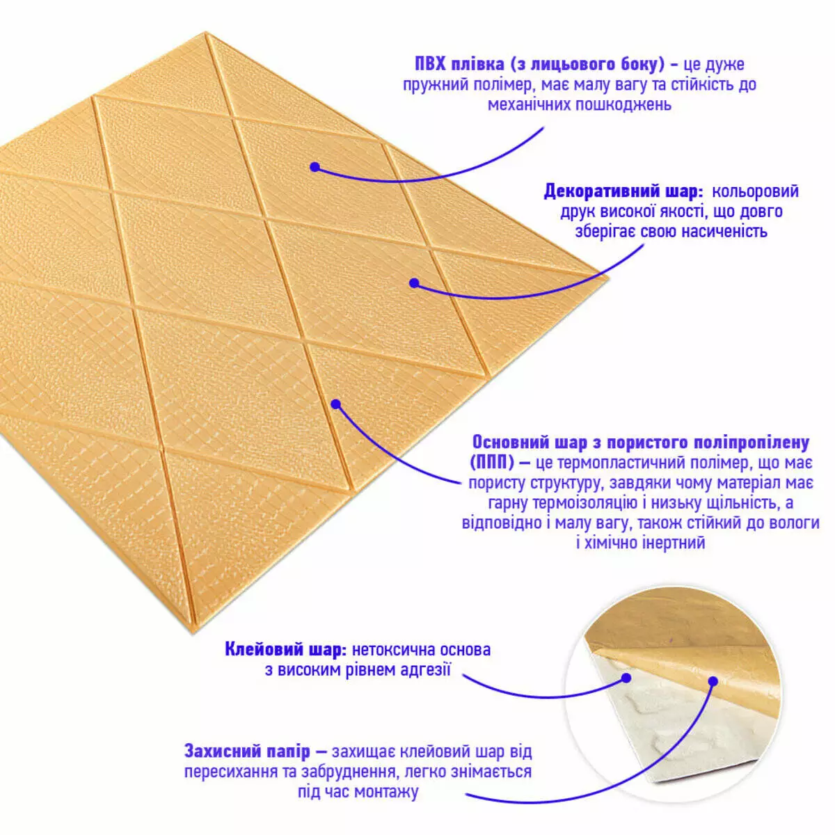 самоклеючі панелі зі спіненого поліпропілену. Це легкий, гнучкий та