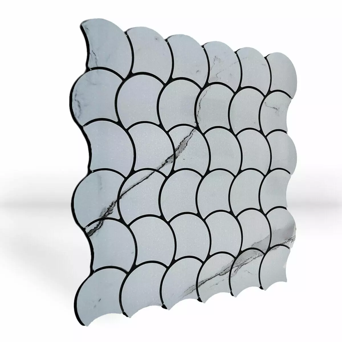 Плитка з ПЕТ (поліетилентерефталату) часто використовується для створення мозаїчних візерунків та декоративних елементів. PET - це пластичний матеріал, який має цілий ряд переваг: легкість, міцність і стійкість до впливу вологи. Цей матеріал може бути використаний для створення внутрішнього оздоблення як у житлових, так і у комерційних приміщеннях.