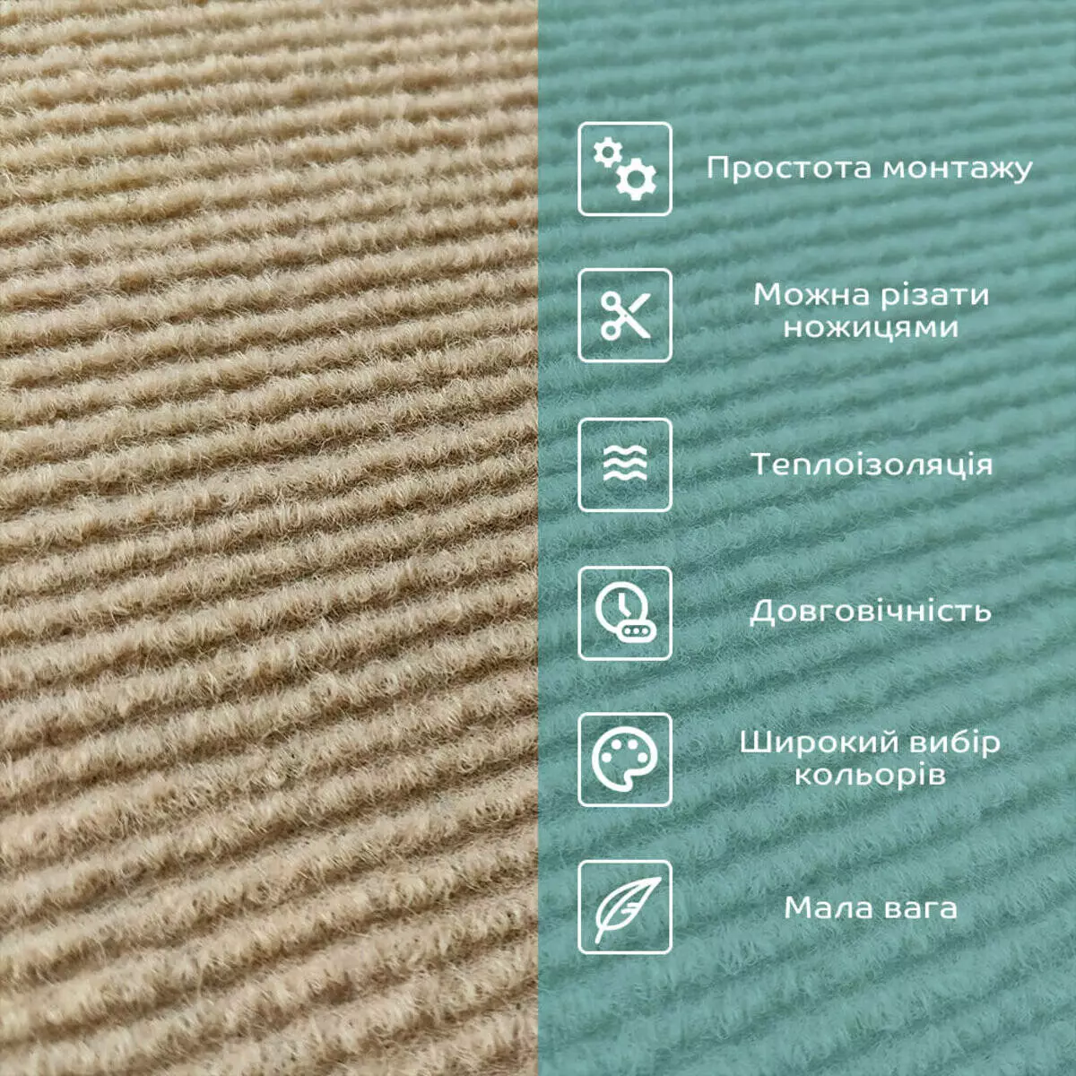 • Догляд: ковролінова плитка легко чиститься і миється, що робить її догляд простим та зручним.