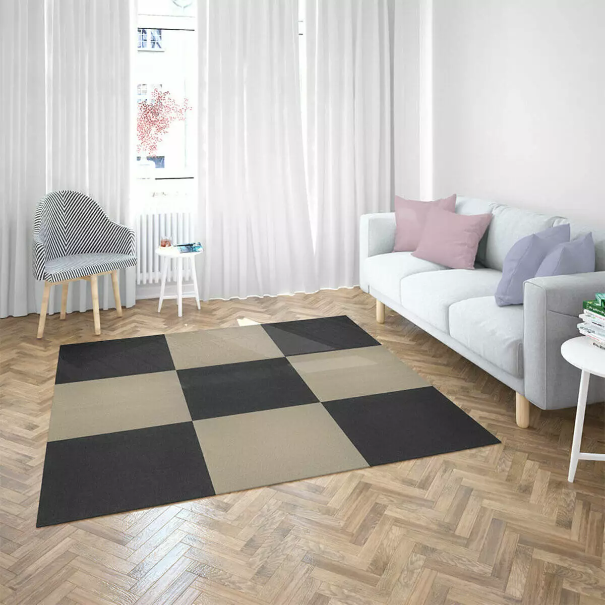 • Декоративні можливості: ковролінова плитка пропонує широкий вибір дизайнів, кольорів та текстур, що дозволяє створити унікальний інтер'єр та підкреслити стиль приміщення.