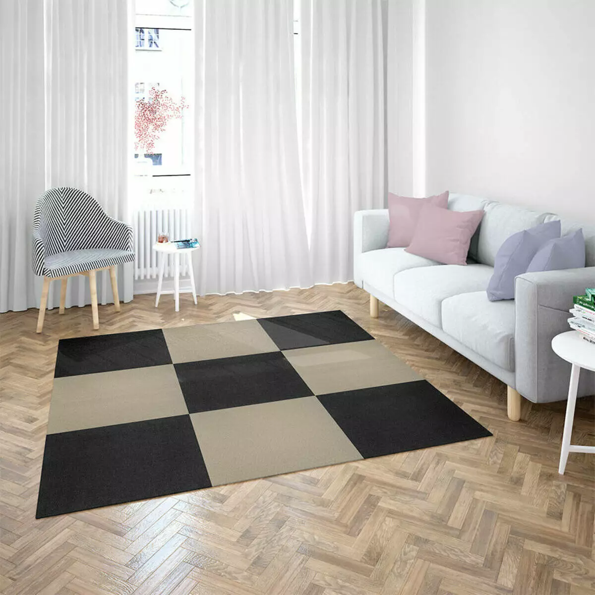 • Декоративні можливості: ковролінова плитка пропонує широкий вибір дизайнів, кольорів та текстур, що дозволяє створити унікальний інтер'єр та підкреслити стиль приміщення.
