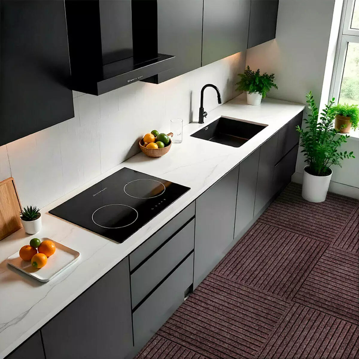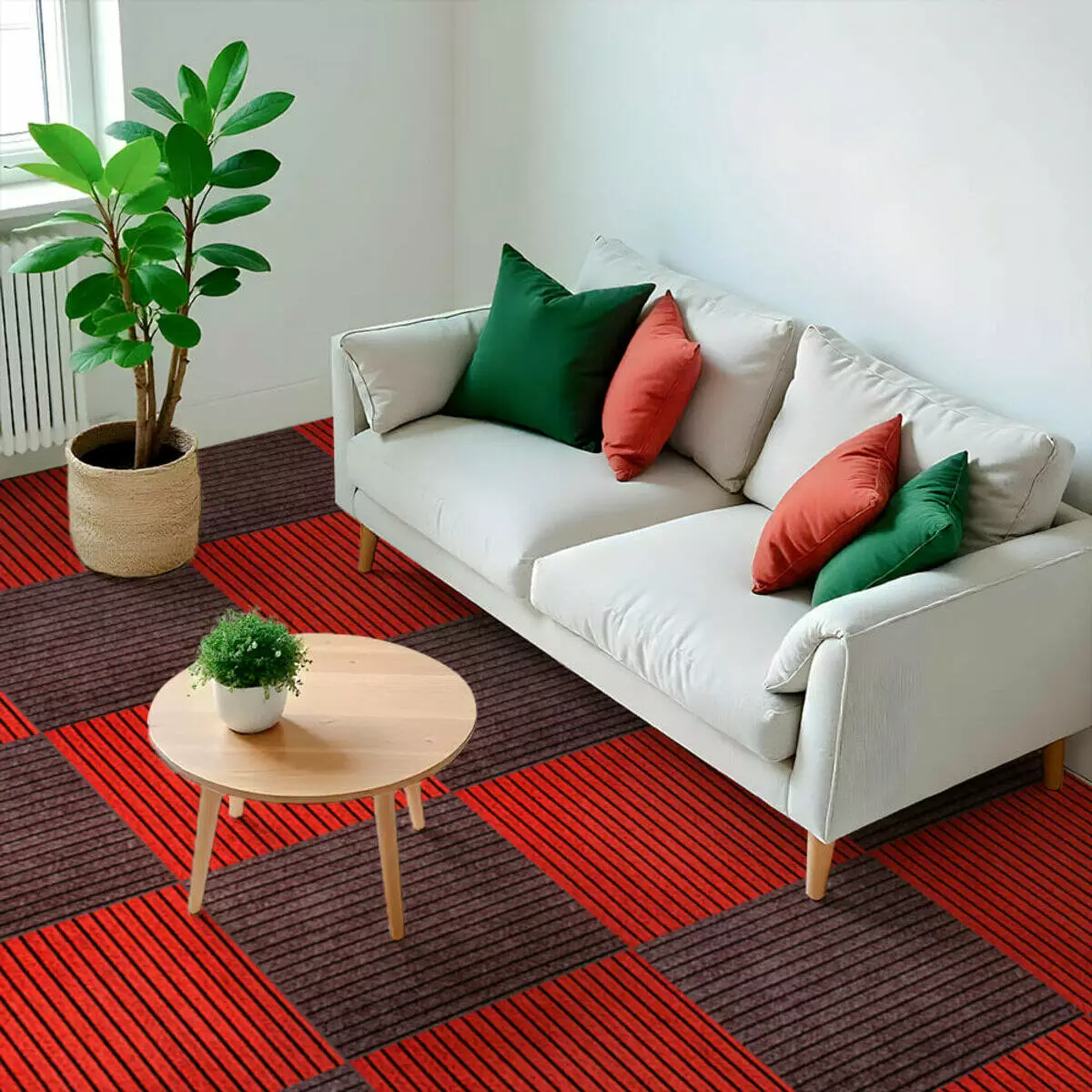 • Декоративні можливості: ковролінова плитка пропонує широкий вибір дизайнів, кольорів та текстур, що дозволяє створити унікальний інтер'єр та підкреслити стиль приміщення.