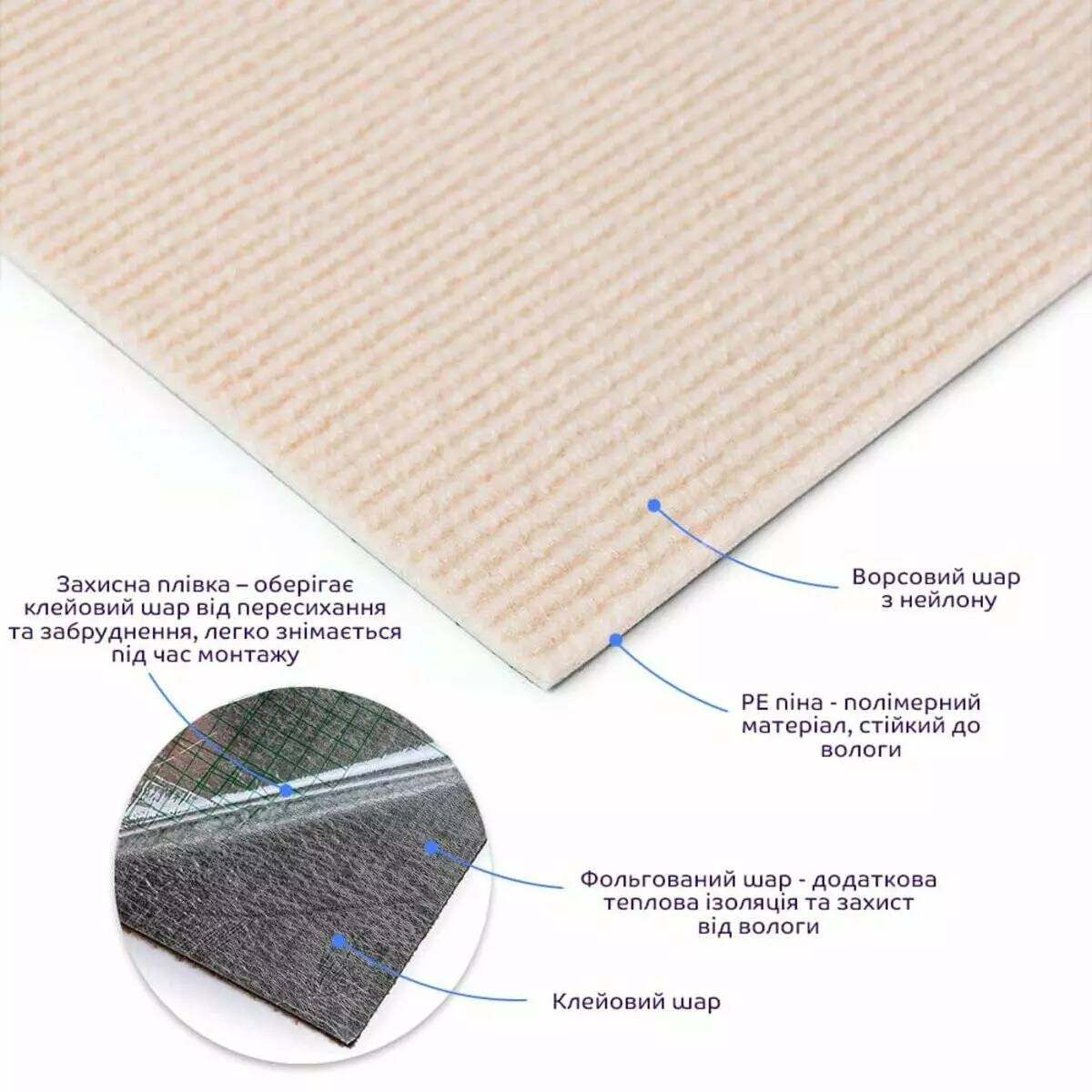 • Догляд: ковролінова плитка легко чиститься і миється, що робить її догляд простим та зручним.