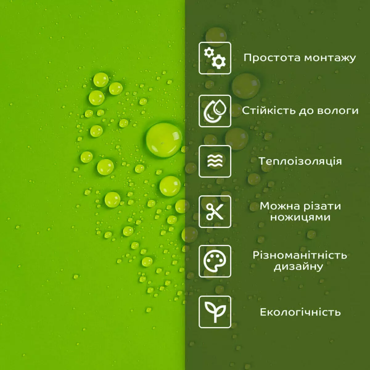 • 1. Легкість та міцність: плитка легка та міцна, що спрощує її логістику, установку та забезпечує довгий термін служби. Матеріал легкий в установці, можна різати ножицями чи монтажним ножем, не потребує додаткових матеріалів чи спеціалістів. Між смугами не розходиться, не роздмухується і не деформується. Відсоток обрізу становить 1%, що є найкращим показником для настінних покриттів;