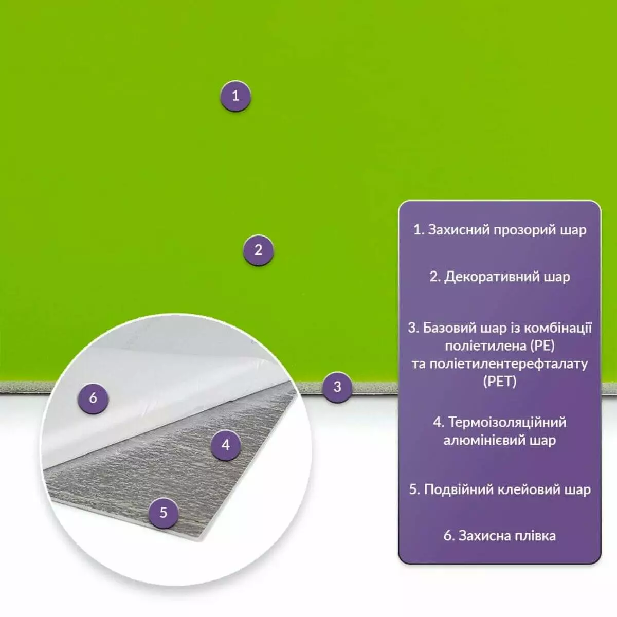 • Базовий шар з комбинації поліетилена (PE) і поліетилентерефталату (PET)